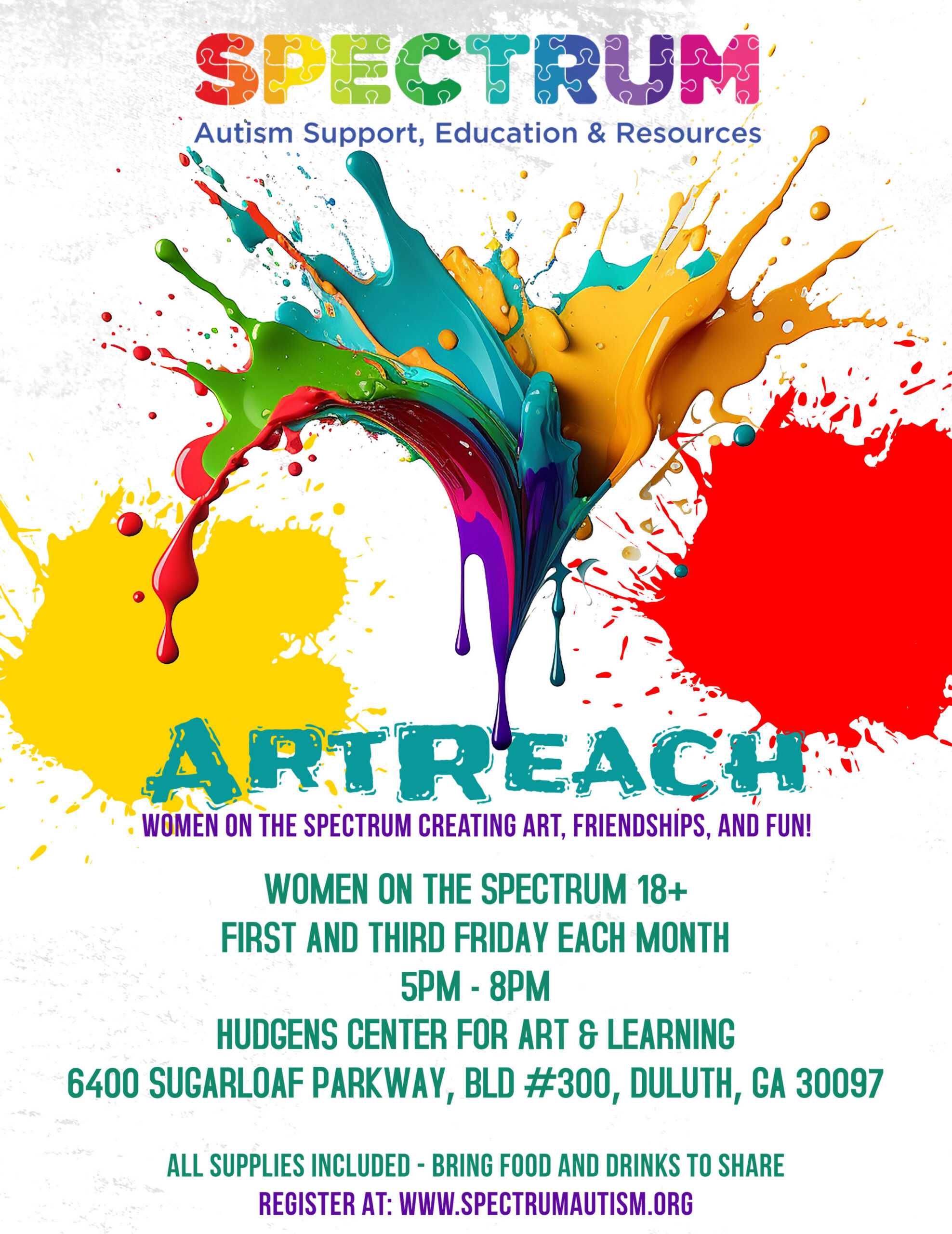 Social group for women on the spectrum ages 18 and older to get together and have a fun night socializing and doing arts and crafts. This will be held the 3rd Thursday of every month at Hudgens Center for Art and Learning 6400 Sugarloaf Parkway Building #300 - Duluth, GA 30097